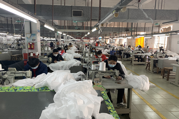 做好上面的防護(hù)準(zhǔn)備工作,員工(身體狀況良好的)也可以放心的來到工廠上班了,現(xiàn)在思諾華制衣的員工也已經(jīng)陸陸續(xù)續(xù)的來到工廠,全力開展生產(chǎn)防護(hù)服,抗擊疫情,隔離病毒但不隔離愛,請(qǐng)觀看以下思諾華制衣工廠實(shí)拍生產(chǎn)民用防護(hù)服的圖片(員工均佩戴口罩、身體狀況均良好):