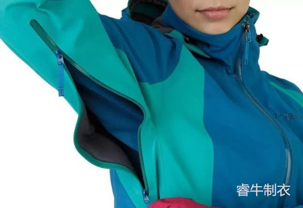 多數(shù)沖鋒衣都有設(shè)計(jì)在腋下散熱拉鏈的,它的作用是讓使用者在戶外活動(dòng)中,根據(jù)實(shí)際使用情況調(diào)節(jié)服裝內(nèi)的溫度。對(duì)于專業(yè)沖鋒衣來說,拉鏈一般都采用防水功能的產(chǎn)品。而滑雪服因?yàn)槠溥\(yùn)動(dòng)的特點(diǎn),一般是把拉鏈設(shè)計(jì)在胸口附近或者上肢的前方。和沖鋒衣的相同的是?;┓母邫n產(chǎn)品也使用防水拉鏈。
