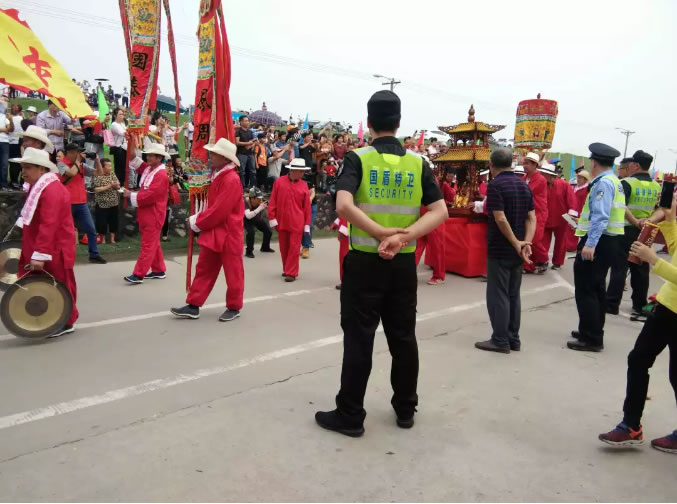 當(dāng)日活動盛況空前,各種演出活動云集,群眾紛紛涌向胥江祖廟燒香祈福,踏青賞景。參加保衛(wèi)任務(wù)的隊員在清晨6點多已經(jīng)到崗到位,按照責(zé)任分工迅速開展工作。保衛(wèi)任務(wù)過程中,人頭攢動,熙熙攘攘的市民與藍(lán)天白云共享這場盛會。所有隊員著裝整齊、文明平和、盡職盡責(zé),全力做好人流和車流疏導(dǎo)工作,堅決預(yù)防踩踏事件、交通事故等情況的發(fā)生,充分展現(xiàn)了國盾特衛(wèi)“吃苦耐勞、無私奉獻(xiàn)”的精神面貌。各隊員之間更是相互協(xié)作,緊密配合,形成了強(qiáng)大的安保合力,有力地保障了廟會活動的平穩(wěn)有序進(jìn)行。