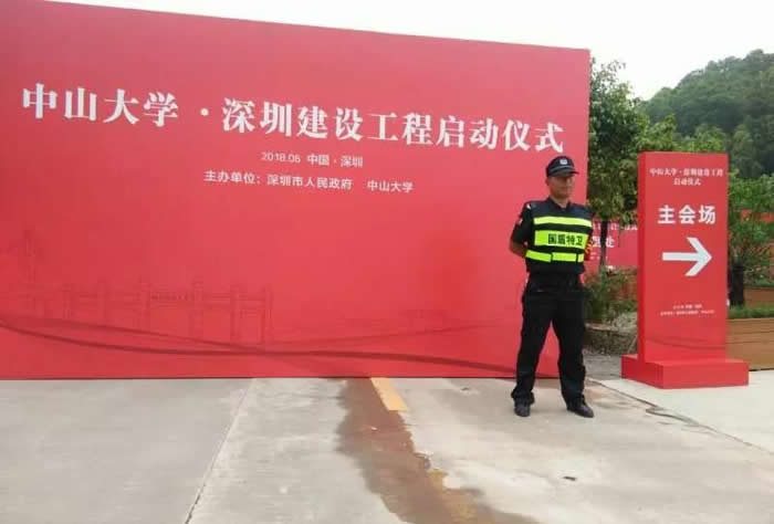位于深圳市光明新區(qū)的中山大學(xué)深圳校區(qū)建設(shè)工程項(xiàng)目啟動儀式于6月12日16點(diǎn)30舉行,國盾特衛(wèi)保安集團(tuán)經(jīng)過建設(shè)單位嚴(yán)格考核評估,成為中山大學(xué)深圳校區(qū)建設(shè)工程項(xiàng)目安保服務(wù)提供單位,專業(yè)的安保管理人員及保安人員提前一天進(jìn)駐啟動儀式及施工現(xiàn)場,實(shí)施安全保衛(wèi)管理和人群控制等安保工作,確保了中山大學(xué)深圳校區(qū)建設(shè)工程項(xiàng)目啟動儀式安全、有序、正常地進(jìn)行。