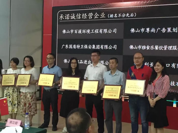 為加快推進佛山市企業信用體系建設,規范佛山市企業信用評價工作,提升佛山市各行各業的管理水平。今天上午,佛山市信用管理協會、佛山市消費者委員會向全市30多家受到社會肯定、有良好聲譽的企業頒發了《承諾誠信經營企業》牌匾。廣東國盾特衛保安集團再獲殊榮,名列其中。