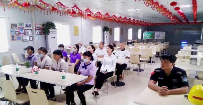 食堂的消防安全一直是健力寶集團安全防火的重點部位之一。為提高食堂人員預防火災、處置火災及提高消防事故的應急處置能力,6月24日下午,佛山國盾特衛保安服務公司應健力寶集團邀請,組織健力寶集團食堂工作人員開展了食堂消防安全知識培訓活動,健力寶集團食堂員工共計10余人參加了此次活動。
