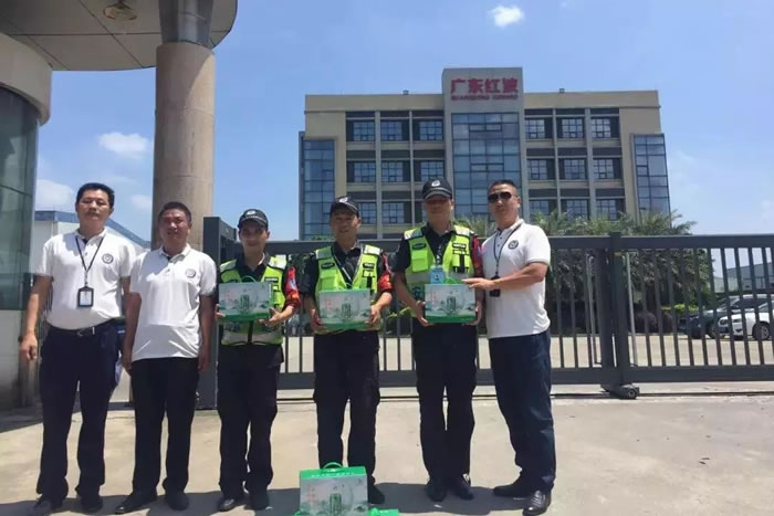 七月的廣東,熱氣炎炎,酷暑難擋。佛山國盾特衛保安服務公司的保安隊員們克服各種困難依然奮戰在保安工作的第一線,堅守崗位,服務質量不下降,以良好的素質贏得了客戶單位的好評。
