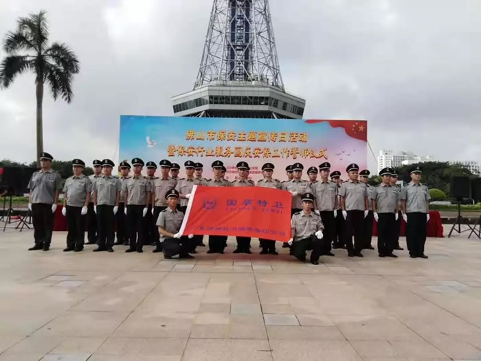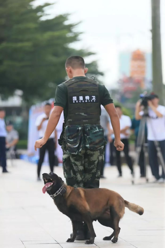 為了迎接中華人民共和國(guó)70周年華誕,號(hào)召全市保安積極行動(dòng)起來(lái),7月24日上午,佛山市保安服務(wù)行業(yè)在禪城區(qū)嶺南明珠電視塔廣場(chǎng),與全國(guó)、全省同步,舉行了隆重的聲勢(shì)浩大的“佛山市保安主題宣傳日暨保安行業(yè)服務(wù)國(guó)慶安保誓師儀式”。廣東國(guó)盾特衛(wèi)保安集團(tuán)有限公司董事長(zhǎng)夏學(xué)樹率領(lǐng)其集團(tuán)公司方隊(duì)全程參加,在技防操演中,國(guó)盾特衛(wèi)保安集團(tuán)特種犬護(hù)衛(wèi)隊(duì)威武亮相,成為全場(chǎng)亮點(diǎn),受到各方好評(píng)。