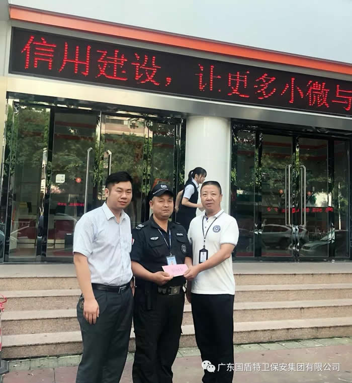 日前,三水農(nóng)村信用社特別向國盾特衛(wèi)集團(tuán)和張水生同志本人發(fā)來了表揚(yáng)信,感謝國盾特衛(wèi)保安集團(tuán),感謝張水生。集團(tuán)董事長夏學(xué)樹特別委托公司管理人員第一時(shí)間把慰問和慰問金送到了一線執(zhí)勤點(diǎn),并號召集團(tuán)上下向張水生同志學(xué)習(xí)。