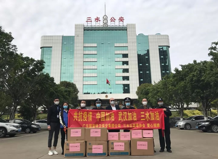 公安為人民,人民助公安。警企協(xié)力,齊心抗疫。新型冠狀病毒感染的肺炎疫情發(fā)生以來,廣東國盾特衛(wèi)保安集團有限公司繼向云東海總商會捐贈3萬元人民幣、先后向云東海街道辦事處、三水區(qū)人民醫(yī)院捐贈一批防護物資,2月17日下午,又攜三水區(qū)禁毒協(xié)會向三水區(qū)公安分局捐贈了一批醫(yī)用防護物資,計有醫(yī)用隔離服200件、一次性口罩4000只、隔離手套500雙、免洗消毒洗手液150瓶等等。三水區(qū)禁毒協(xié)會會長、集團黨支部書記、董事長夏學樹在簡短的交接儀式上代表公司及區(qū)禁毒協(xié)會,向三水區(qū)公安分局全體警輔人員始終如一堅守一線抗擊疫情,恪盡職守全心全意的守護三水人民的平安,表示崇高的敬意和衷心的感謝,并用實際行動為共戰(zhàn)疫情盡一份綿薄之力。