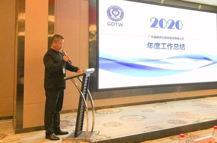 3月9日下午15時,廣東國盾特衛保安集團有限公司召開2020年度工作總結表彰大會,各部門員工、優秀保安員、先進分隊代表約100多人參加了此次大會。
