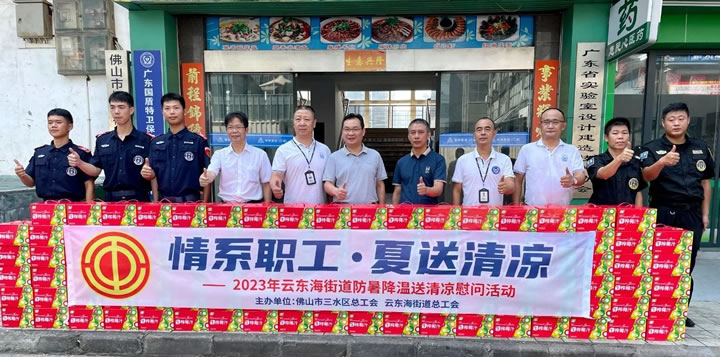 在三水區(qū)總工會、云東海街道黨工委的支持下,為將集團公司對員工的關(guān)心關(guān)愛送到一線,貫徹落實基層一線防暑降溫措施,自7月份起,集團公司工會組織開展“夏日送清涼、防暑保安康”活動,集團公司黨支部書記、董事長夏學(xué)樹親自部署,要求服務(wù)管理部各級管理人員落實傳達公司的關(guān)心關(guān)愛精神,以關(guān)心一線隊員工作和生活為出發(fā)點,各護衛(wèi)點負責(zé)人結(jié)合夏日實際科學(xué)合理安排崗位,叮囑一線隊員加強自我防護,及時補充水分,時刻關(guān)注自身健康狀況,積極投身協(xié)助維護治安、城市管理創(chuàng)文建設(shè)工作中去,繼續(xù)發(fā)揚特別能吃苦、特別能奉獻、特別能戰(zhàn)斗的優(yōu)良作風(fēng),高質(zhì)量做好駐點安保服務(wù)。