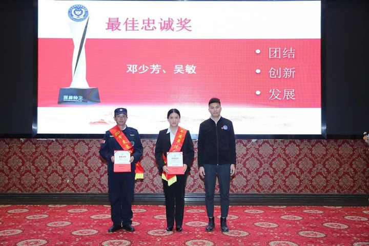 表彰大會結(jié)束后,集團(tuán)公司黨支部副書記、董事長助理鄭紅戰(zhàn)率領(lǐng)各職能部門負(fù)責(zé)人齊唱《團(tuán)結(jié)就是力量》,拉開2024年迎新聯(lián)歡晚會的序幕,一首《國盾特衛(wèi)之歌》唱出屬于我們國盾特衛(wèi)人的精神風(fēng)采,幸運(yùn)大抽獎更是將現(xiàn)場活動氣氛不斷推向高潮,贏得與會人員陣陣掌聲喝彩。