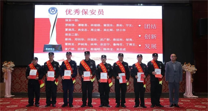 經(jīng)營會議結(jié)束后,集團(tuán)公司召開2023年度工作表彰會議暨迎新聯(lián)歡晚會,集團(tuán)公司各部門員工、分公司代表、各區(qū)域大隊(duì)長以及受表彰的分隊(duì)代表和優(yōu)秀保安員等180多人出席。