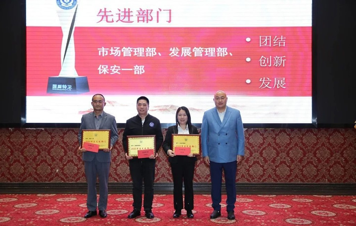 集團(tuán)公司黨支部書記、董事長夏學(xué)樹發(fā)表總結(jié)講話,首先肯定了2023年全體國盾特衛(wèi)人取得的顯著成績,并向奮戰(zhàn)在一線的員工致以崇高敬意和衷心感謝,向受到表彰的集體和個人表示熱烈的祝賀。然后,從當(dāng)前經(jīng)濟(jì)發(fā)展形勢、行業(yè)形勢、市場結(jié)構(gòu)等多方面,客觀分析目前集團(tuán)公司在發(fā)展中存在問題以及遇到的瓶頸。他強(qiáng)調(diào),圍繞“穩(wěn)增長”發(fā)展主線,聚焦“市場拓展、信息化建設(shè)、績效激勵、人才引培”等四大重點(diǎn),在新的一年,要求全體國盾特衛(wèi)人積極把握時代機(jī)遇的同時,充分發(fā)揮自身優(yōu)勢和效應(yīng),以鞏固現(xiàn)有資源為基礎(chǔ),加快實(shí)施創(chuàng)新驅(qū)動,促進(jìn)動能轉(zhuǎn)換;以市場需求為導(dǎo)向,積極拓展保安市場新業(yè)態(tài);以品質(zhì)服務(wù)為主線,深挖綜合安保的利潤增長極;著力練好企業(yè)內(nèi)功,深化“提質(zhì)、增效、降本”,緊貼市場趨勢,化挑戰(zhàn)為機(jī)遇,奮力開創(chuàng)高質(zhì)量發(fā)展新局面。