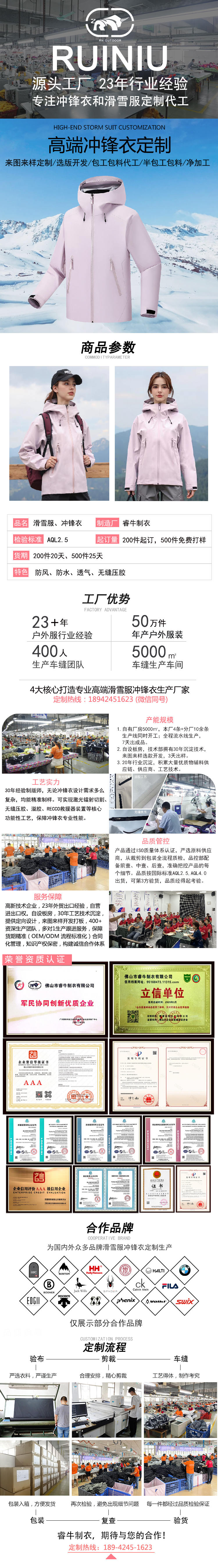 持續(xù)23年專注沖鋒衣、滑雪服定制加工廠家