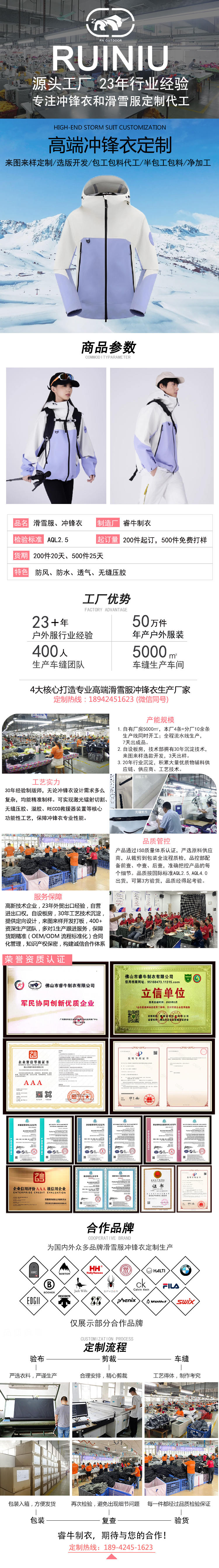 持續23年專注沖鋒衣、滑雪服定制加工廠家