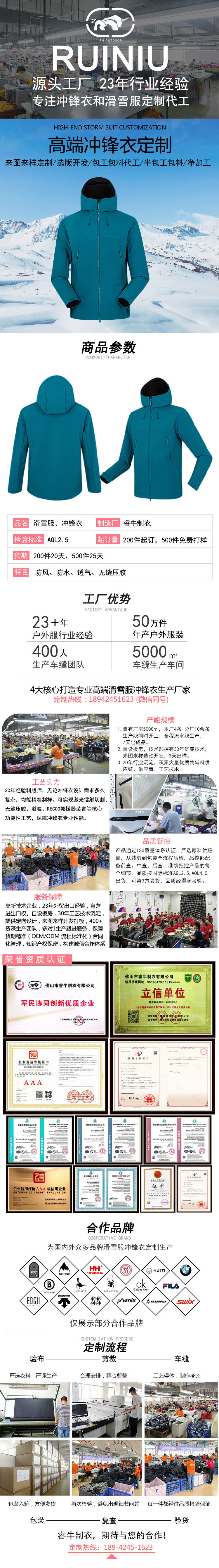 優(yōu)質(zhì)面料:專業(yè)高端沖鋒衣定制23年沉淀優(yōu)質(zhì)供應(yīng)商資源,可根據(jù)客戶需求精選優(yōu)質(zhì)面料。