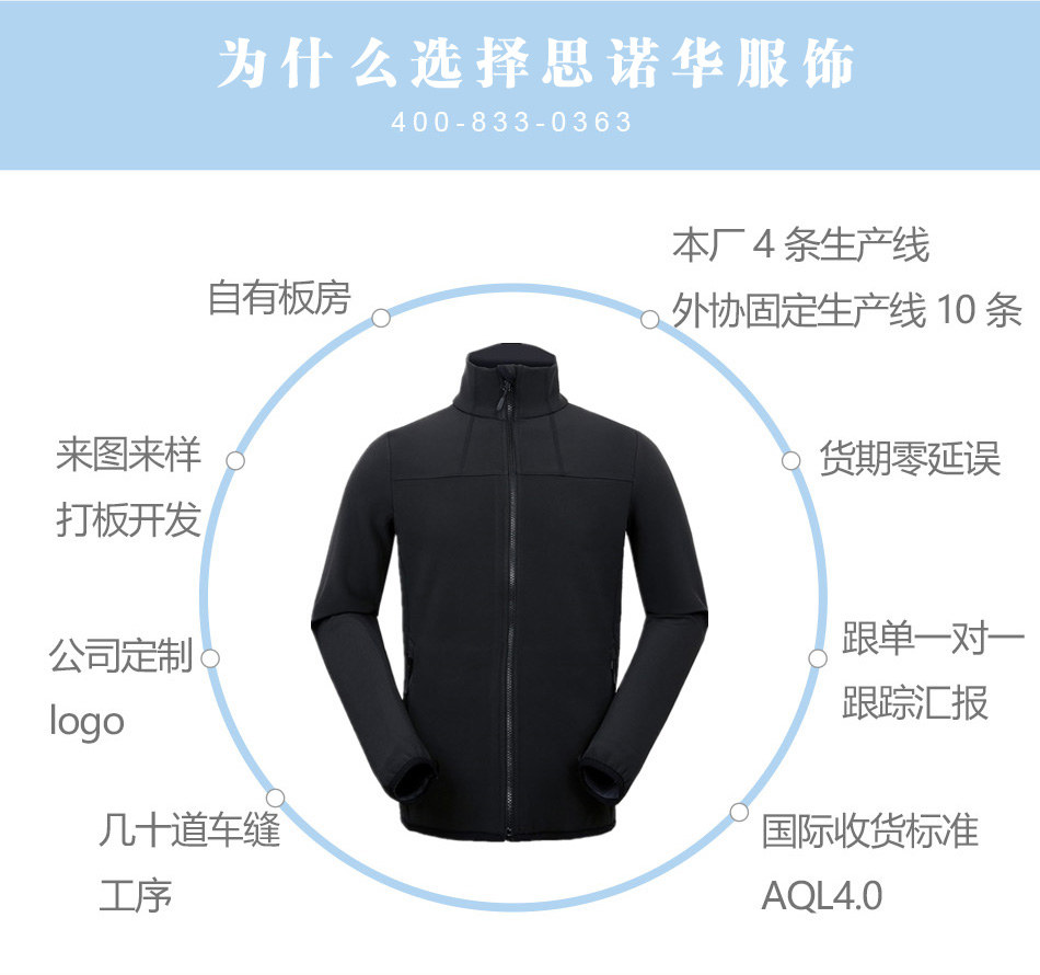 防風透氣軟殼型沖鋒衣定制—思諾華服飾